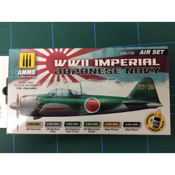 This high-quality acrylic paint set is designed to provide the accurate camouflage colours used by the Imperial Japanese Navy's aircraft during World War II. This set is essential for modelers aiming to paint iconic Japanese planes such as the Zero and the D3A Val, among others.