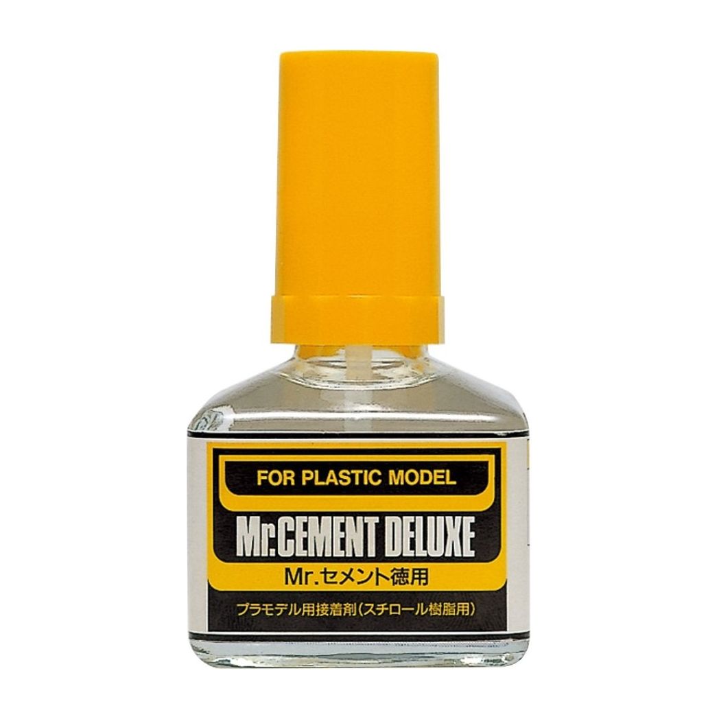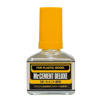 Mr. Cement Deluxe by Mr. Hobby is the perfect adhesive for your modeling needs. Featuring a medium viscosity and slower drying time, this cement allows you to apply it to parts before assembling, ensuring a strong bond. It's ideal for larger areas and parts such as fuselage, wing, and hull sections.