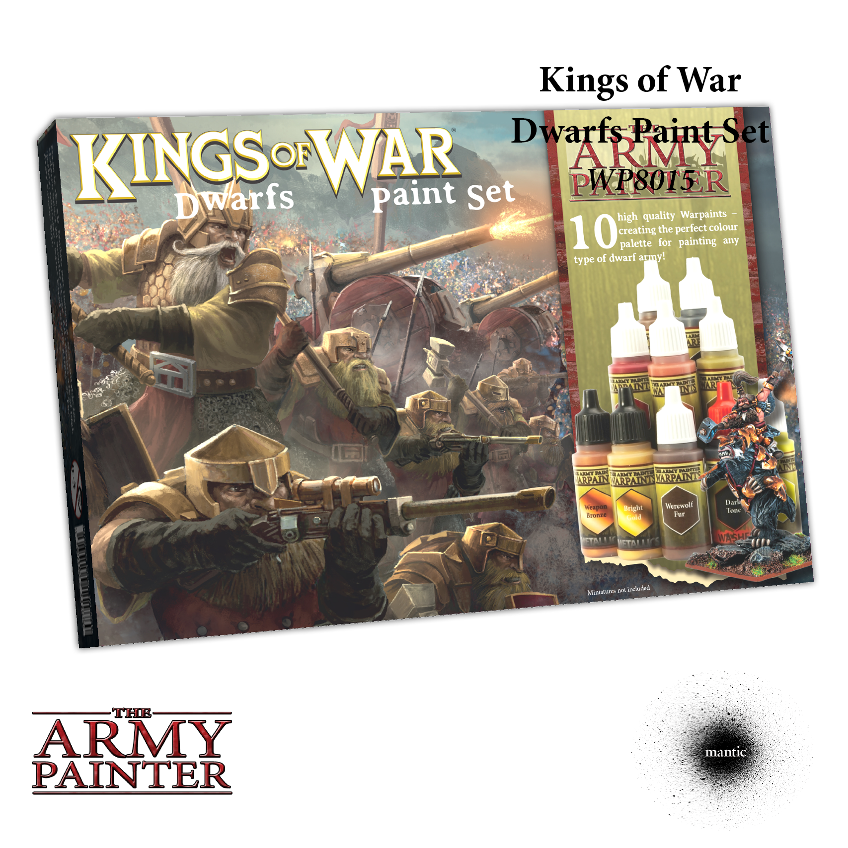 Bring your dwarf army to life with the Kings of War Dwarfs Paint Set, featuring a range of colors designed to make your miniatures stand out on the battlefield!