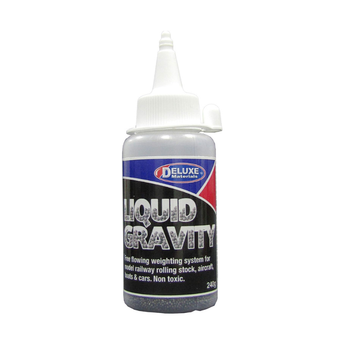 Achieve perfect balance with the Deluxe Materials Liquid Gravity 240g, a must-have for scale model enthusiasts. This non-toxic, easy-flowing weighting system enhances the stability of scale models such as military models, railway rolling stock, model planes, boats, and cars. Pour it into small cavities and set in place with your favorite Roket cyano (AD43-46) or Speed Epoxy. Use to improve electric conductivity and stability of rolling stock, adjust balance point of model planes, boats & submarines. 50ml bottle weighs almost 0.25 kilo!