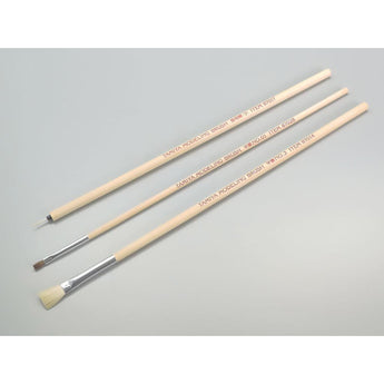 The set includes No.3 (8mm width) and No.01 (3mm) flat brushes, perfect for applying broad strokes and detailed work, respectively, along with a small pointed brush for precise application. Whether you're a beginner or an experienced modeler, this set provides the brushes you need for your projects.