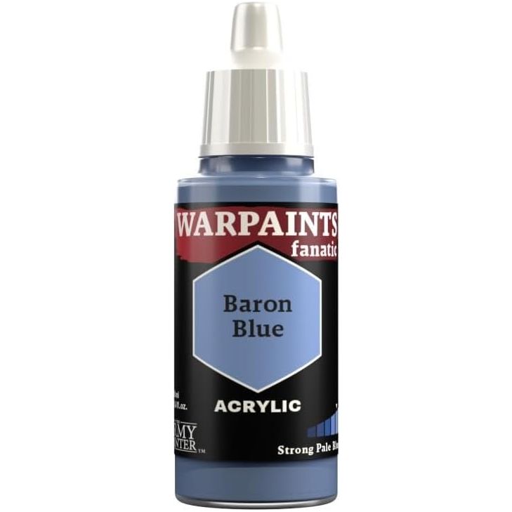 The Army Painter's Fanatic Baron Blue, a commanding addition to your miniature painting arsenal. This acrylic paint presents a light purplish blue tone, engineered for meticulous detailing on miniatures, armor, and terrain. With its seamless application and superior coverage, it bonds effortlessly to plastic, metal, and resin surfaces, ensuring formidable results. Achieve a matte finish for heightened realism and versatility in your creations. Elevate your painting prowess with this versatile paint, adaptable to a range of strategic techniques including layering, dry brushing, and highlighting.