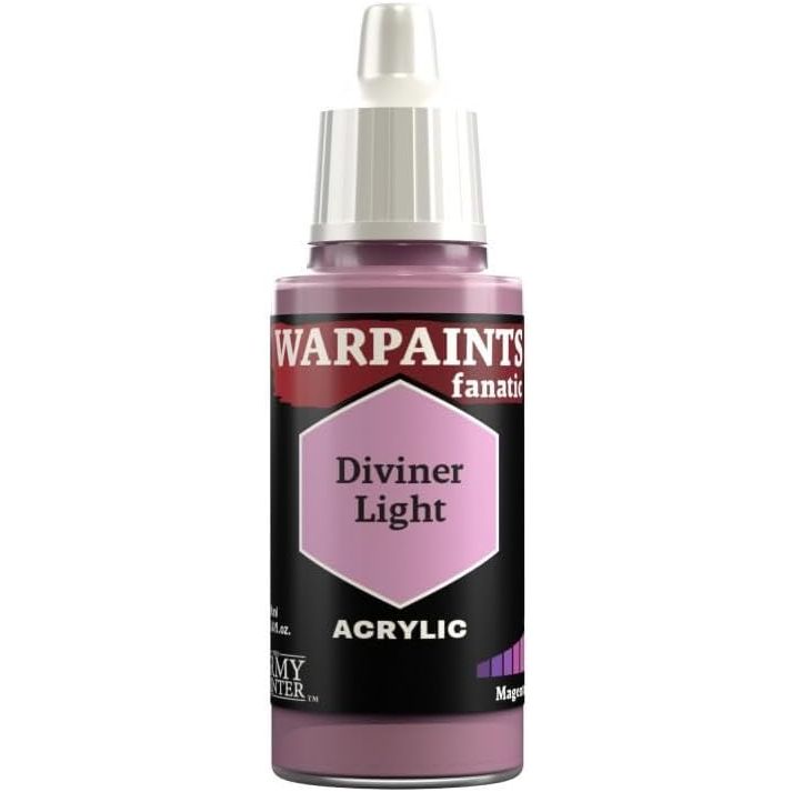 The Army Painter's Fanatic Diviner Light, a luminous addition to your painting repertoire. This acrylic paint is a pale reddish purple tone, perfect for illuminating your miniatures with bold final highlights. With its smooth application and exceptional coverage, Diviner Light adheres effortlessly to plastic, metal, and resin surfaces, ensuring professional-grade results every time. Achieve a matte finish for heightened realism and versatility in your creations. Unleash your creativity with this versatile paint, compatible with various techniques including layering, dry brushing, and highlighting.