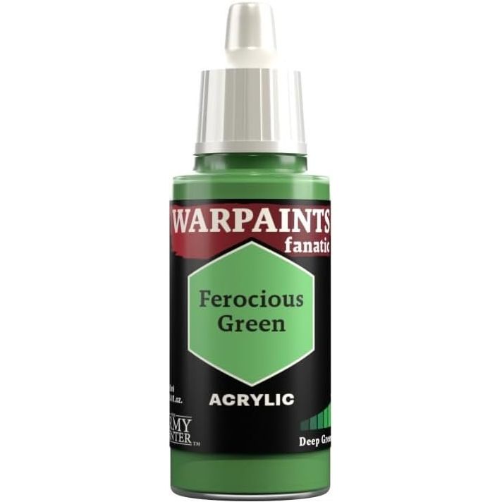 The Army Painter's Fanatic Ferocious Green, a bold addition to your painting repertoire. This acrylic paint features a very light green, perfect for highlighting miniatures, armor, and terrain with strength and intensity. With its smooth application and exceptional coverage, Ferocious Green adheres effortlessly to plastic, metal, and resin surfaces, ensuring professional-quality results every time. Achieve a matte finish for enhanced realism and versatility in your creations. Explore your painting skills with this versatile paint, compatible with various techniques including layering, dry brushing, and highlighting.