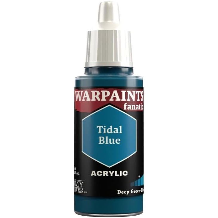 The Army Painter's Fanatic Tidal Blue, a captivating addition to your painting arsenal. This acrylic paint boasts a mesmerizing dark greenish blue tone, perfect for infusing your miniatures, armor, and terrain with depth and character. With its smooth application and exceptional coverage, Tidal Blue adheres effortlessly to plastic, metal, and resin surfaces, ensuring professional-quality results every time. Achieve a matte finish for enhanced realism and versatility in your creations. Explore your painting skills with this versatile paint, compatible with various techniques including layering, dry brushing, and highlighting.