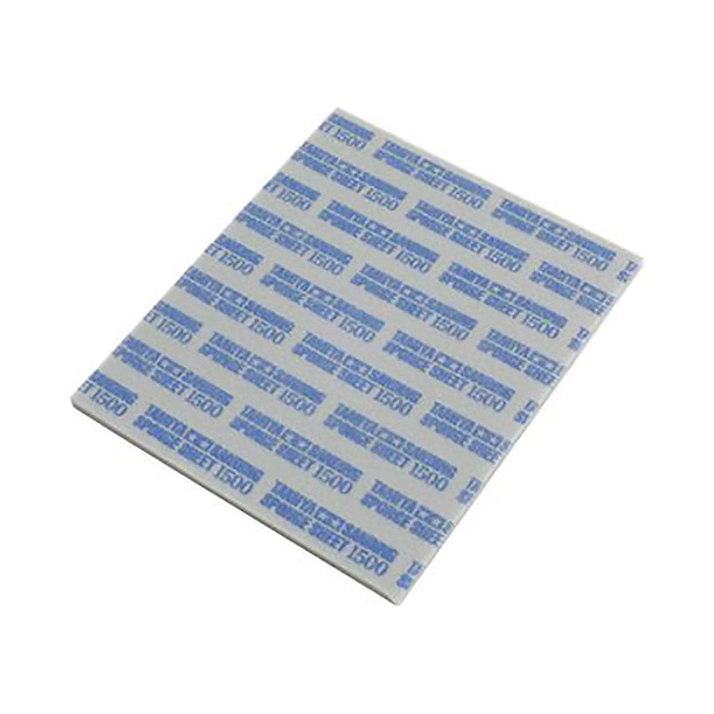 Attached to a flexible sponge base, the abrasive coat of this sanding sheet is well-suited for removing protrusions on plastic models and also finishing materials such as wood and metal. The sponge's flexibility allows even finishing of curved surfaces and hard-to-reach corners. This item can be easily cut into the desired shape/size using a modeling knife. Note: Suitable for wet sanding use.