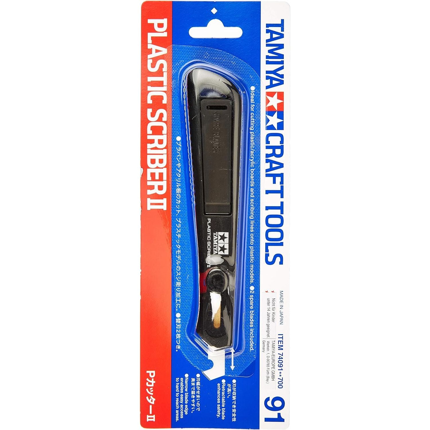 Enhance your modeling precision with the Tamiya Plastic Scriber II, designed for cutting and detailing tasks on plastic scale models and Mini 4WD bodies. This tool features a Tamiya original tungsten steel narrow blade that provides effortless access to intricate areas and allows for precise modifications.